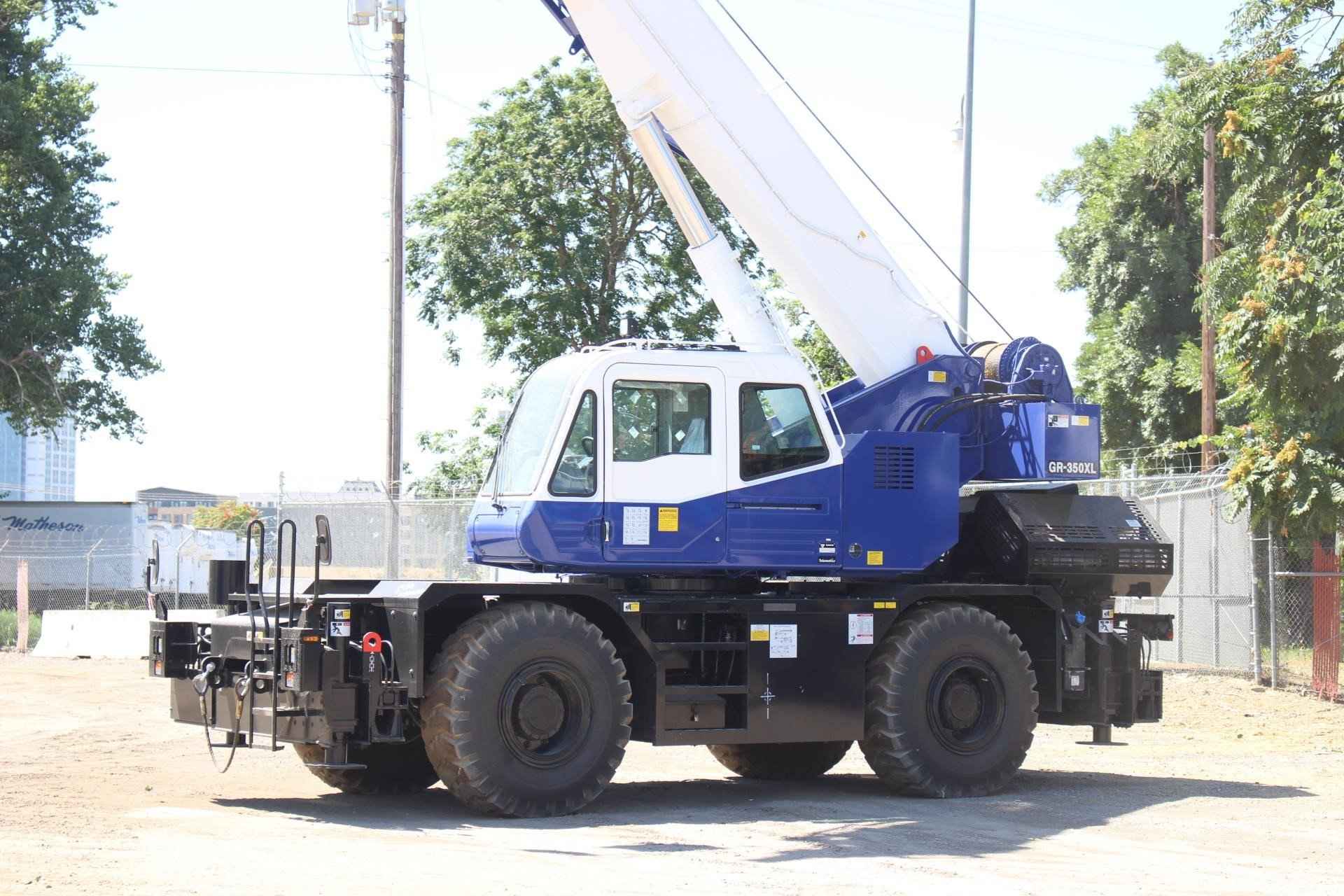 2023 TADANO GR350XL-3 35 TON CRANE Standard features: • Four Section full power partially synchronized boom 31.8’-101.7’ • 23.6’ or 42’ lattice jib (tilt type) with 5°, 25° or 45° pinned offsets and self-storing pins • Auxiliary lifting sheave (single top) stowable • Variable speed main hoist with grooved drum, cable follower and 558’ of 5/8” cable • Variable speed auxiliary hoist with grooved drum, cable follower and 322’ of 5/8” cable • Drum rotation indicator (audible, visible and thumper type) main and auxiliary hoist • Anti-Two block device (overwind cutout) • Boom angle indicator • Tadano electronic load moment indicator system (AML-C) • Outrigger extension length detector • Electronic crane monitoring system • Tadano twin slewing system and 360° positive slewing lock • Self-centering finger control levers with pilot control • Control pedals for boom elevating and boom telescoping • 3-way adjustable cloth seat with armrests, high back and seat belt • Tilt-telescoping steering wheel • Tinted safety glass and sun visor • Front windshield wiper and washer • Roof window wiper and washer • Power window (cab door) • Rear view mirrors (right and left side) • Cigarette lighter and ashtray • Cab floor mat • Pump disconnect in operator’s cab • Hydraulic oil cooler • Hot water cab heater and air conditioner • Positive control • Work lights • Independently controlled outriggers • Four outrigger extension positions • Self-storing outrigger pads • Cummins QSB6.7 TIER IV final turbo charged after cooled engine 235 HP with exhaust brake • Electronic controlled automatic transmission driven by torque converter • 4 X 4 X 4 drive/steer • Non-spin rear differential • Semi-elliptic leaf springs suspension with hydraulic lockout device (front and rear) • 20.5-25(OR) tires • Disc brakes • Fenders • Air dryer • Water separator with filter (high filtration) • Engine over-run alarm • Back-up alarm • Low oil pressure/high water temp. warning device (visual) • Rear steer centering light • Air cleaner dust indicator • Full instrumentation package • Complete highway light package • Tool storage compartment • Tire inflation kit • 24 volt electric system • 4.4 ton hook ball with swivel • 35 ton – 4 sheaves with swivel hook block and safety latch for 5/8” wire rope • Towing hooks - Front and rear • Lifting eyes • Hook block tie down (front bumper) • Weighted hook storage compartment • Halogen head lamp • Telematics (machine data logging and monitoring system) with HELLO-NET via internet • Fuel consumption monitor • Eco mode System