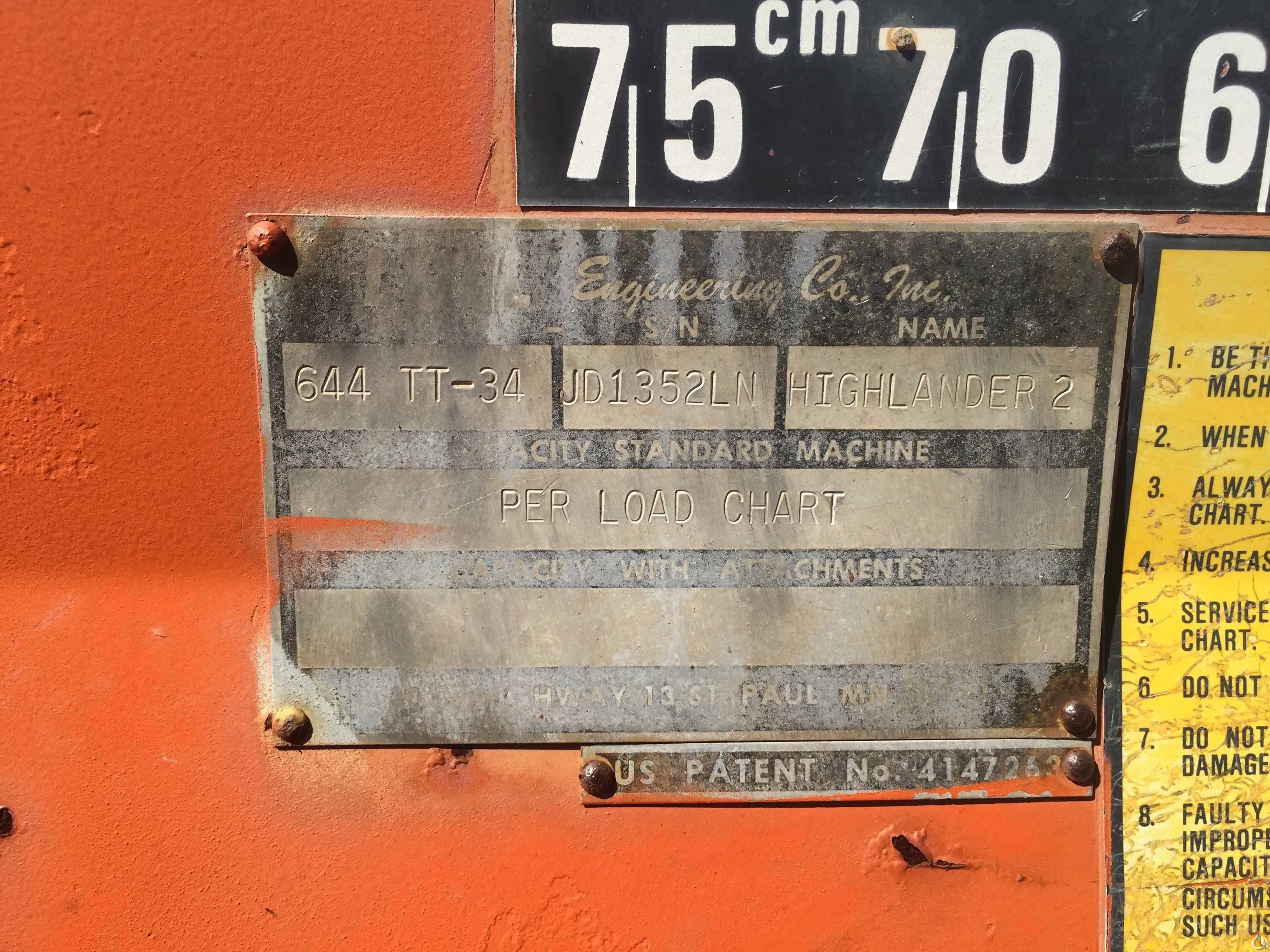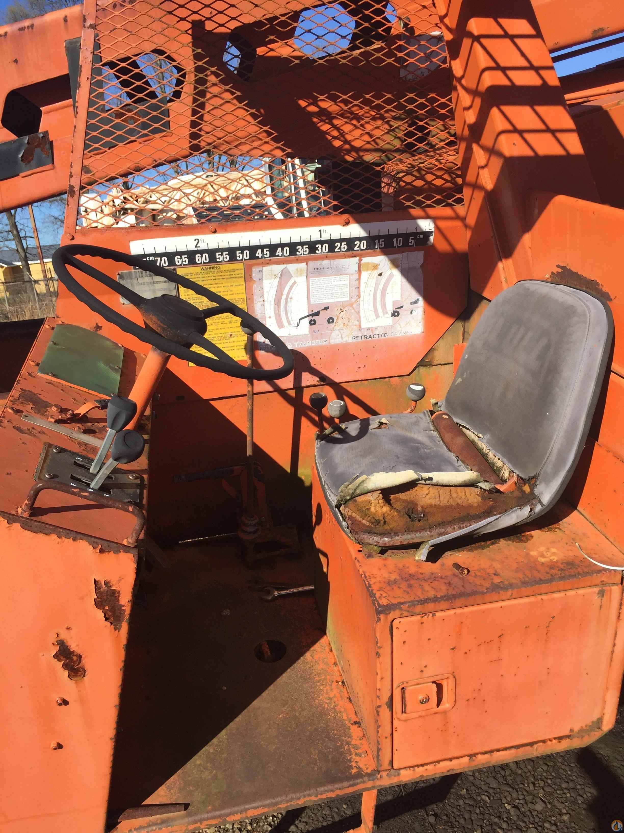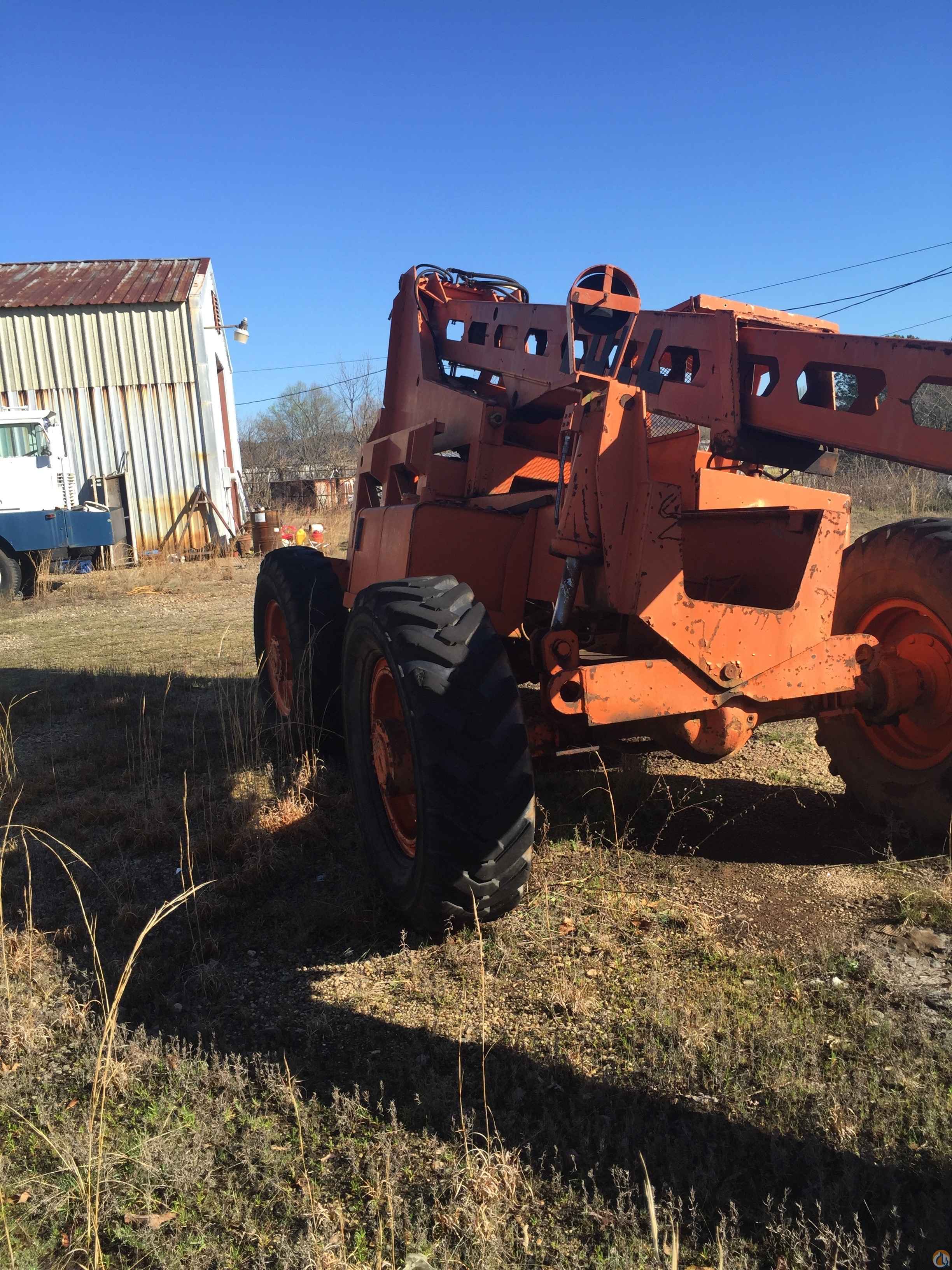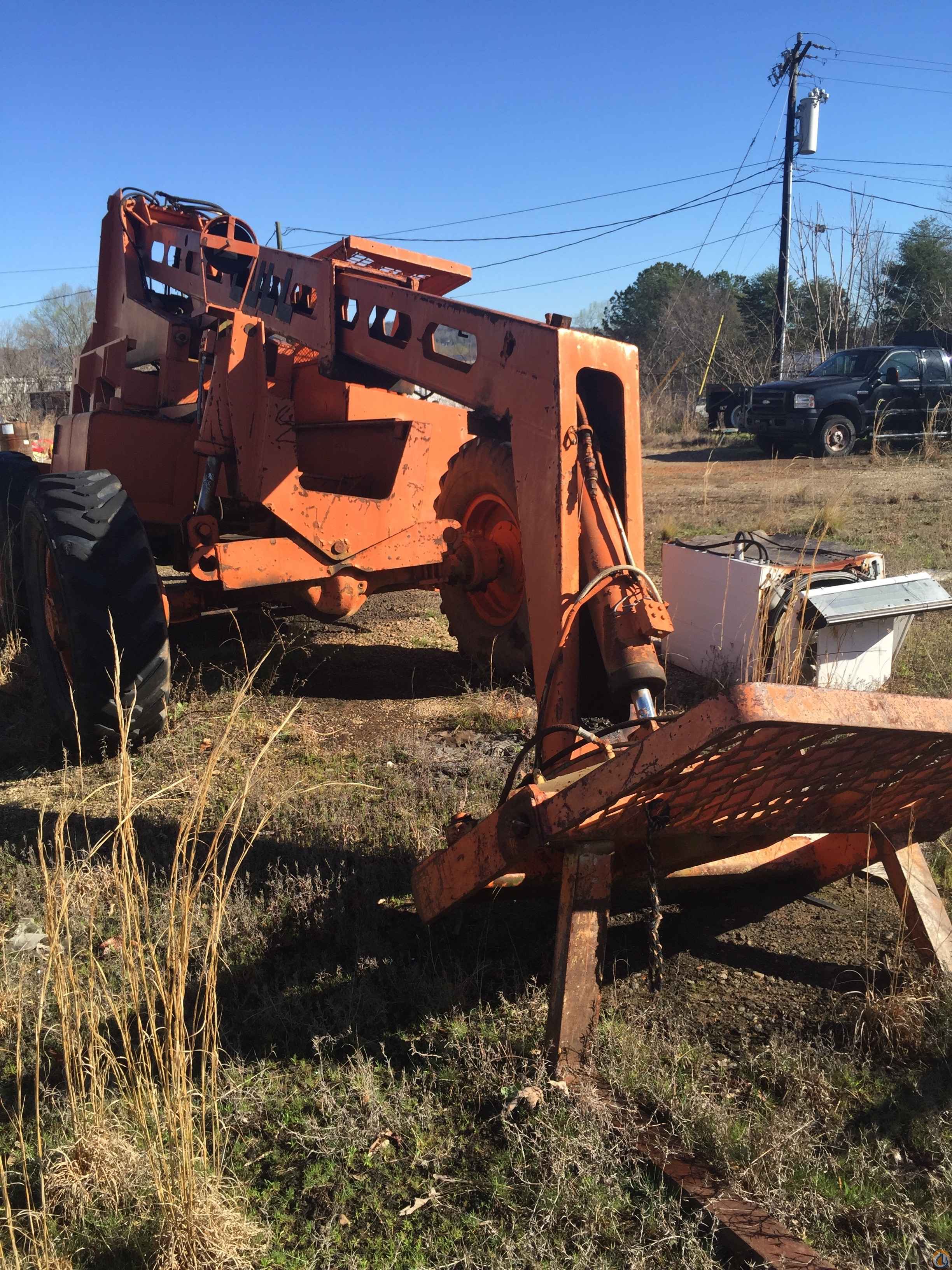6,000 lb capacity, 34' lift height, 4 wfdr, 3 way steering, foam filled tires, 72" fork carriage, John Deere diesel engine.