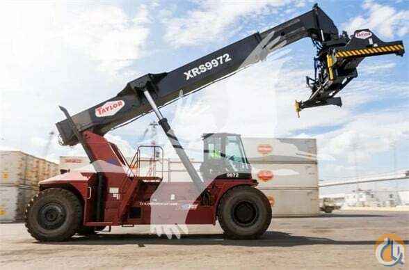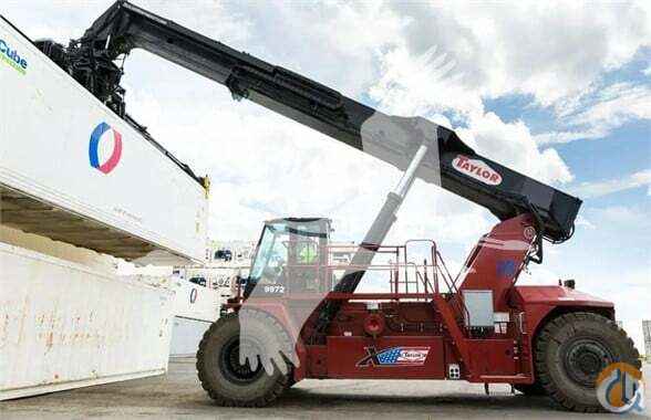 STANDARD FEATURES: XRS-9972 Telescopic Boom for stacking 5-High 1st row, 4-High 2nd row and 3-High 3rd row (9-ft 6-in Loaded) 20-40 ISO Container Handling Attachment, with rotation, side shift, expansion/retraction and damping Accumulator in Lift Circuit Volvo 12.8L TAD1371VE 388-HP Tier 4-Final Diesel (Turbocharged) Fuel/Water separator Donaldson dry-type air cleaner w/safety element & restriction indicator (with TaylorMax Precleaner) Dana TE-30 5-speed powershift transmission Powertrain protection system for engine and transmission Kessler D-102W HD planetary drive axle with wet disc brakes Taylor 800 welded steel steer axle with stud protectors (single hydraulic cylinder design with heavy-duty links from the cylinder ram directly to tapered roller bearing mounted spindles) CHASSIS All-welded steel frame with 4 lifting eyes (lifting eyes not designed for level pick) Bolted counterweight Replaceable bolt-on steps and handrails Lockable Fuel Cap Removable deck plates open to expose drive train for ease of maintenance CAB Climate Controlled sliding (hydraulic/electric) all-welded steel center mount cab (includes right hand and left hand access doors with rear exit window and dome light) 66,000 BTU total heating with front and rear defrosting, cab pressurizer and fresh air intake 40,000 BTU air conditioning and two circulation fans Exterior Cab Positioning Switch allows the cab to be moved while the machine is powered down Tinted glass with front, rear, and top windshield wipers Front and Top windshield washer Fully adjustable air ride swivel seat with 35° of rotation (15°/20° left-right) Multifunction joystick, with integrated directional shift control, mounted on adjustable arm rest Operator Restraint System (Orange, anti-cinch seat belt with starting sequence neutral lock) Operator Presence System with timed idle and neutral shutdown (5 minute default, password adjustable from 1-120 minutes by end user) Taylor Integrated Control System (TICS) …see next page for additional info TaylorTrak Pro - Advanced Fleet Telematics hardware 7-in touch screen color display Rear visibility aid camera system The 2-piece flip-down instrument panel is pre-wired to accommodate heavy-duty accessories. All wiring is color and number coded. Dual USB charging ports Hydrostatic, steer-on-demand power steering with tilt steering column ELECTRICAL 24-volt electrical system with 110 amp alternator Dual heavy-duty batteries Dual Battery disconnect/lock-out switch 2 Sets of Amber/Green/Red Twistlock operation signal lights (mounted in cab and on boom) (4) Chassis mounted LED work lights (4) Boom mounted LED work lights (2) Dedicated Twistlock LED work lights (2) LED step lights Stop-Tail-Turn Lights Circuit breakers with heavy duty connectors (no automotive type fuses) Breaker reset switches Keyswitch-actuated push button start Air Horn with 2-gal air tank (126 dBA) Keyswitch-actuated amber strobe light Forward and reverse-actuated warning alarms