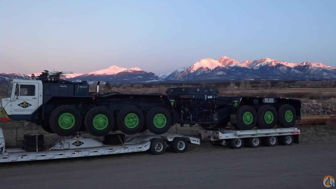 Custom trailers used for Carrier and superstructure included. Takes 45 mins to load and tie down, can be moved at 70 mph, eliminates costly wear and tear on drive train components. Axle weights for carrier trailer, 10,580 lbs front axle, Drivers 35,840 lbs, trailer 37,600 lbs, 4 axle dolly 59,320 lbs.