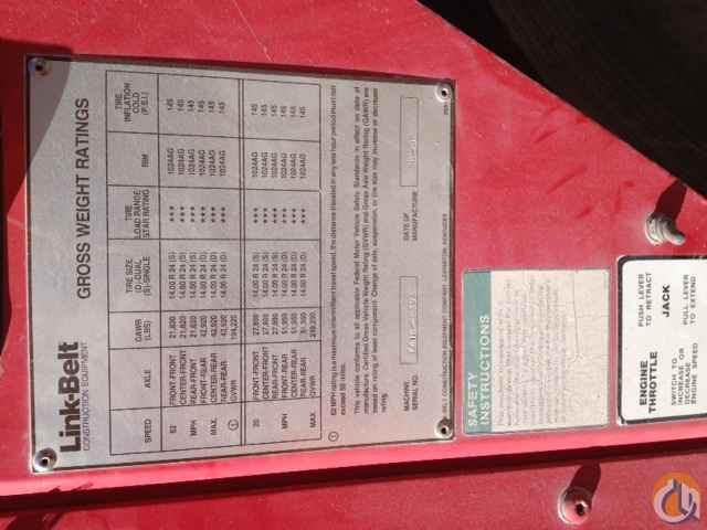 1998 Link-Belt HC278H, 300 Ton, CB&J#474, Cummins N14 DSL UP, 335' main bm, OT & HH tips, incldg 10' reaving sect, 100' jib, 2 winches, RCL load indicator, & A2B, on both, hook block & 15 ton ball, catwalks, A,B,C,D upper CWTS. and A A bumper CWT., Quick Disconnect Turntable Bearing For Self Undecking. Mounted on a Link-Belt 12 x 6 x 6 carrier w/ DET DSL series 60 DDEC III engine, RR trans w/aux. trans, 5th front outrigger, towing shackles,14:00 X 24L tires, One Owner Crane.