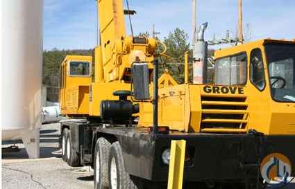 Location.Georgia. 1973 Grove TMS375 Hydraulic Truck Crane, 45 Ton Capacity, 290 Cummins Diesel Engine, 13 Speed Transmission, 70% Tires, 89 Ft. Main Boom, 32 Ft. Jib, 121 Ft. Total Tip Height, 2 Winches, Block And Hook, Ball And Hook. Good Condition, Ready For Work.