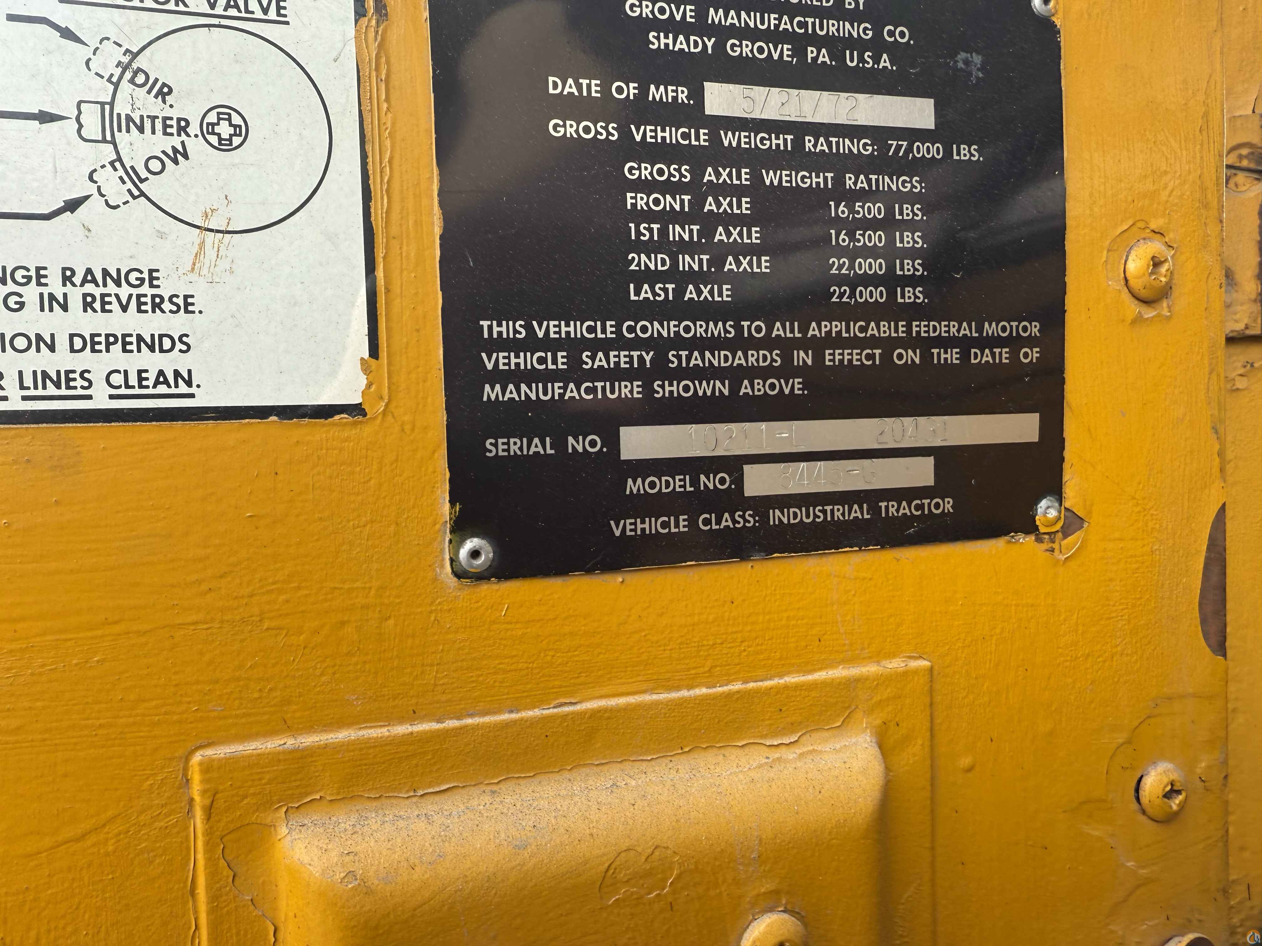 - Rear Tires: 11:00 x 20 - AS PER GROVE SPECIFICATIONS AND SUBJECT TO FINAL CONFIRMATION,