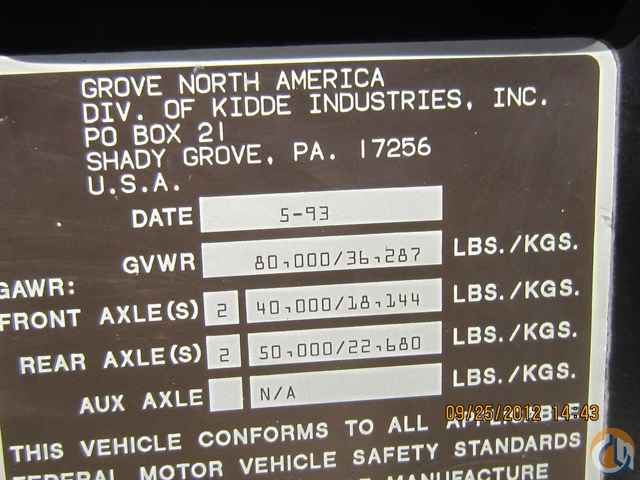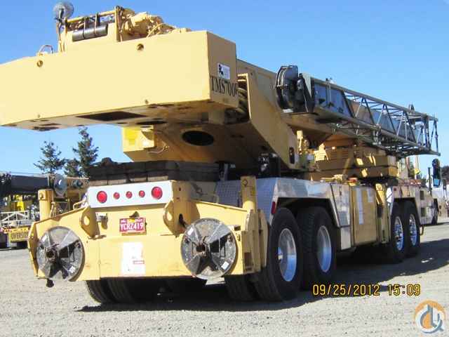 <p style="text-align: justify;">1993 Grove TMS700B 50 Ton CB&J#283, 35-110' 4 Section Full Power Boom, Auxiliary four sheave removable pin on boom nose, 32-56' Swing Away Tele-Jib offsetable to (0 -15 & 30 degrees), 2 Winches-Grove Main & Auxiliary Hoist HO30D-16G Planetary- gives a maximum line pull of 16,508 lbs. and a max. line speed of 469 FPM, Drum Rotation Indicator, Two Speed, Anti Two Block with audio-visual warning and control lever lockout, Load Moment Indicator, 3/4" wire rope, 35 Ton 3 Sheave Miller Hook Block, Hook Ball, Counterweight has one piece that is incorporated into the superstructure (non- removable) plus two 3,900 lb. pieces that are removable and can be pinned to the turntable. (maximum removable ctwt. = 7,800 lbs.), 8'2" 8 X 4 Grove Carrier, Cab is a full vision all steel fabrication with deluxe seat that incorporates armrest, mounted hydraulic single axis controls, Cummins 6CTA 8.3L 6 cylinder Diesel (250 hp.), 13 Speed Transmission Roadranger, Front Tires 425 / 65 R 20.5 Michelin Radial tubeless singles with 60% Left, Rear Tires 12R22.5 - 20PR Yokahama Highway Tread tube type duals which are near new, Polished Aluminum Wheels all around, Plus all the standard equipment, Oregon Certification through 8.2013.</p> <p class="MsoNoSpacing"> </p> <p class="MsoNoSpacing"><a href="http://www.CranesBoomAndJib.com">http://www.CranesBoomAndJib.com</a></p> <p class="MsoNoSpacing"> </p> <p class="MsoNoSpacing" style="text-align: center;"><span style="font-size: large;"><strong>SOLD</strong></span></p>