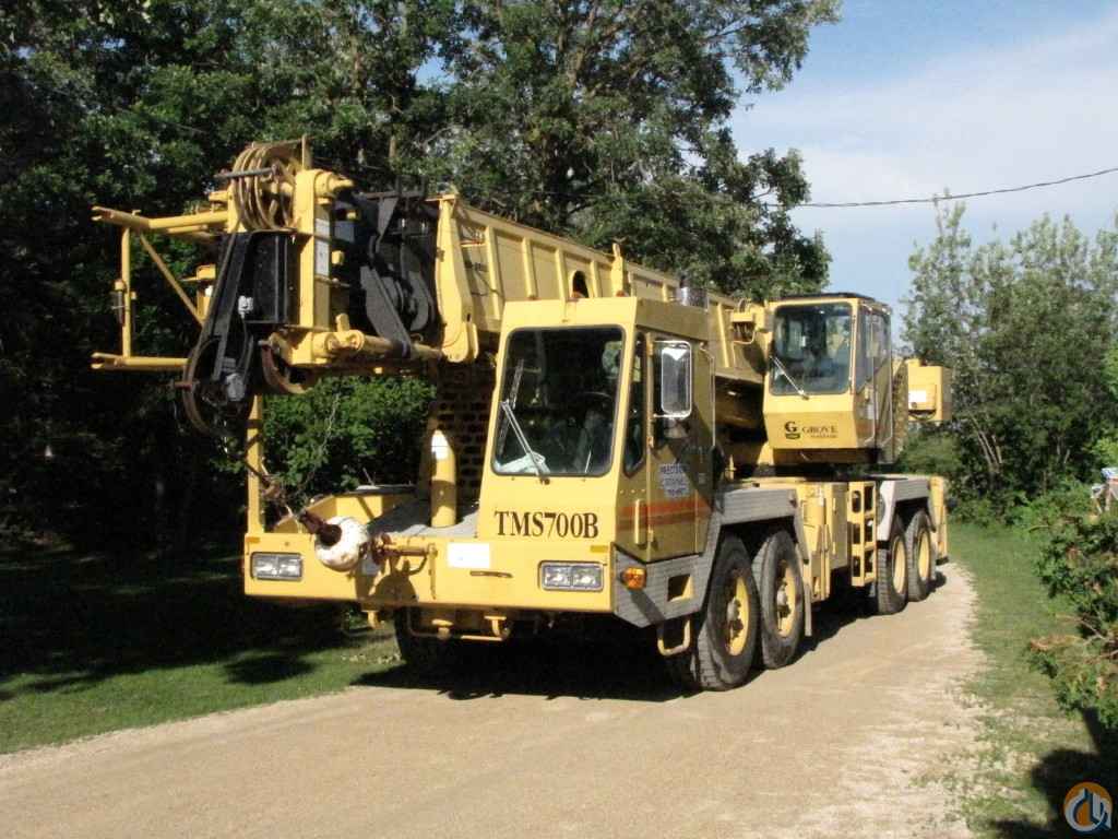 <p style="text-align: justify;"><span style="font-size: medium;"><strong>1997 Grove TMS700B </strong> 110' main boom 32' to 56' offsetable tele-jib, 2 winches, headache ball and hookblock, tires all 90%, 3406 hrs as of July 16, 2013. LMI and A2B, 7800 lbs removable counterweight, boom dolly float kit, Cummings diesel engine. </span></p> <p style="text-align: justify;"> </p> <p style="text-align: justify;"><span style="font-size: medium;">Former U.S. Military crane.</span></p> <p style="text-align: justify;"><span style="font-size: medium;">Boom exytend cylinder resealed and hoses replaced, LMI touchpad replaced recently.</span></p> <p style="text-align: justify;"> </p> <p style="text-align: justify;"><strong><span style="font-size: medium;">Crane has been certified by third party.</span></strong><strong> </strong></p> <p style="text-align: justify;"> </p> <p style="text-align: center;"><span style="font-size: xx-large;"><strong>SOLD</strong></span></p>