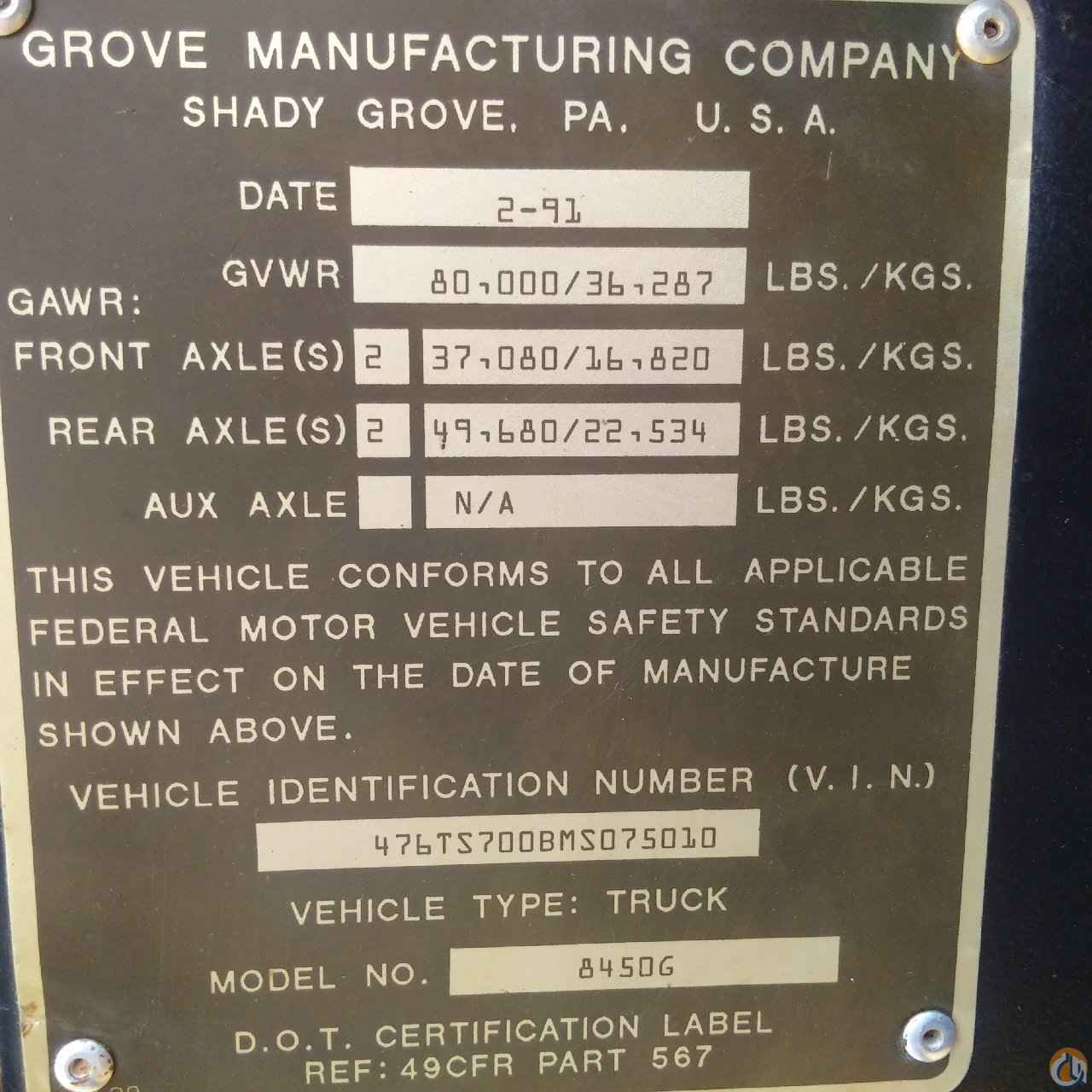 1991 GROVE TMS700B