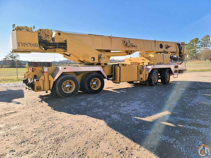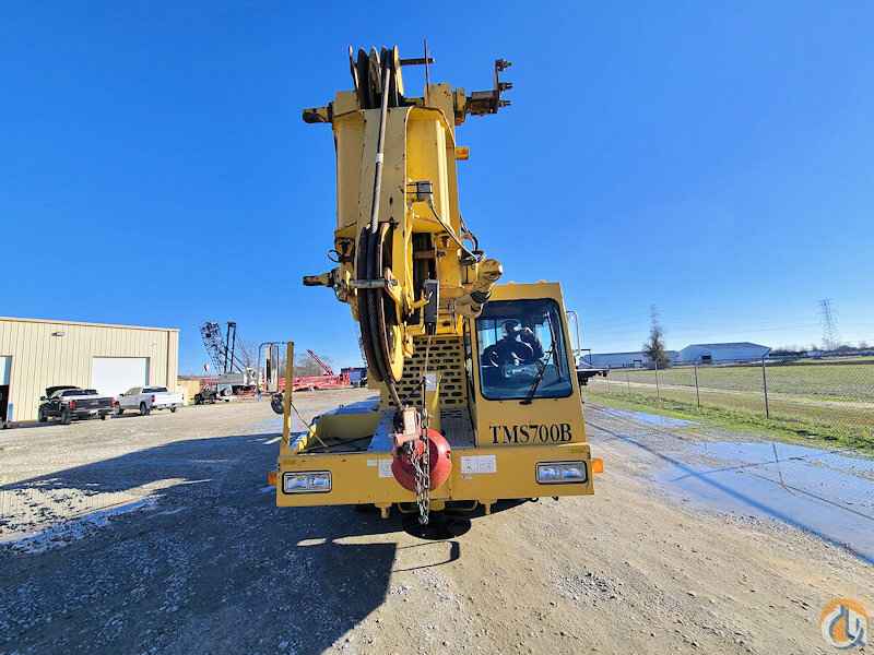 1999 Grove TMS700B equipped with: 35 ft.-110 ft. 4 section full-power boom, 32 ft.-56 ft. side-stow jib, main & auxiliary winches-Grove HD-30, auxiliary winches, max counterweight-7,800 lbs., counterweight removal system,heated cabs, PAT DS-350 LMI system, single axis controls, Cummins diesel engine-250 HP, Eaton Fuller 13 speed manual transmission, 45 ton 3 sheave block, headache ball. 55,250 miles & 15,100 hours. Very good condition with a current OSHA inspection.