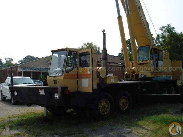 <p>Online Auction Ends 9/8/11.</p> <p>To see full details for this item please go to <a href="http://www.govdeals.com" target="_blank">www.govdeals.com</a> and enter 2449-3 in the Quick Asset Lookup QAL box located on the home page.</p> <p>1986 Grove TMS-875 Truck Crane, 75-Ton Capacity, Total of 105' Boom</p> <p>Truck starts and runs. Crane Operable. Has extra options! Title In Hand! Road Ready!</p> <p>Truck has 13,365 miles. Crane has 3,391 hours.</p> <p>Diesel Engine. Manual 8 speed transmission. Fifth outrigger on front (lift same on front as the back). All sections of main boom are live - total of 105 foot boom. 360 Degree Crane. All controls are working. No hydraulic leaks. High / Low Range. Built in Level on side of truck. No cracked glass. 12 wheels. 4 axles. 1 Spare Tire. Has Hitch on back. Has storage for leveling disks.</p> <p>Computer system weighs load, cable and rigging. Has Fuel Heater / heating system. One engine operates truck and crane with auxiliary switch. All safety two block devices operable. Manufacturer work lights operable.</p> <p>Yellow exterior. Truck has Black vinyl driver's seat with little wear. Crane operator seat is black vinyl and gray cloth and is worn. No radio. No A/C. All owner's manuals available.</p> <p>Came originally from US Army Corps of Engineers about 1 1/2 years ago. Vehicle was maintained regularly. No maintenance records available. Cumberland City decals will be removed prior to vehicle pick up.</p>