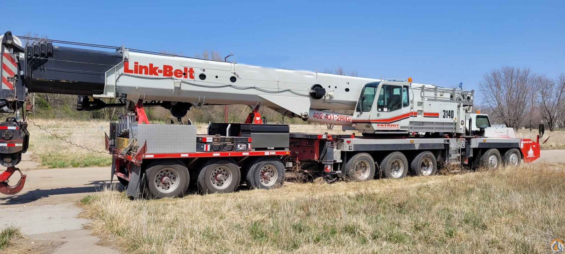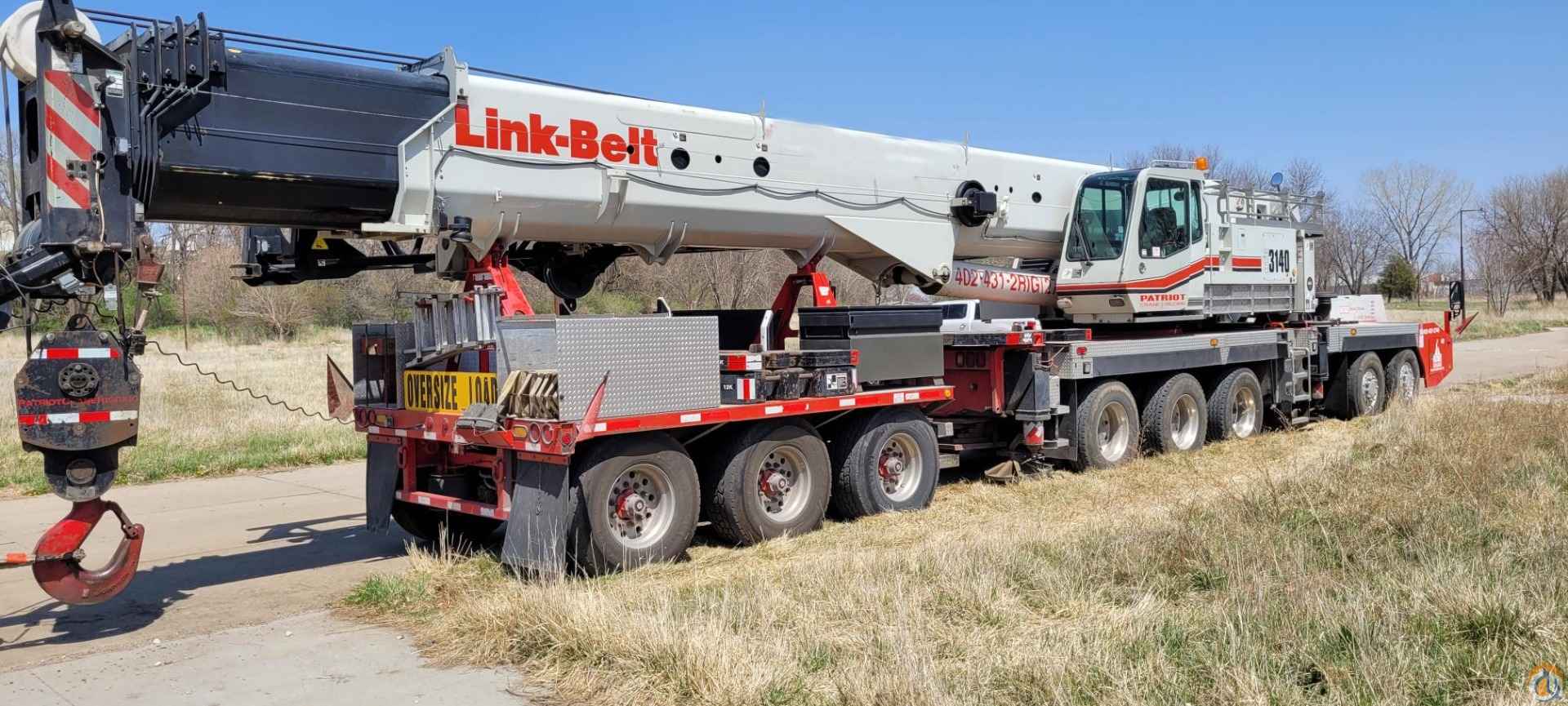 2014 Link-Belt HTC 3140LB, 69,737 Miles, Cummins engine, 5,085 chassis engine hours, Cummins upper engine, 3,900 upper engine hours, Control System: Link Belt Pulse, Good condition, Single Axis Controls, Pin and Latch boom type, Main Boom Length: 195', Jib Length: 55', Block Size: 100 ton, Ball Size: 12 ton, Has main winch, aux winch and aux tip. Includes jib inserts.