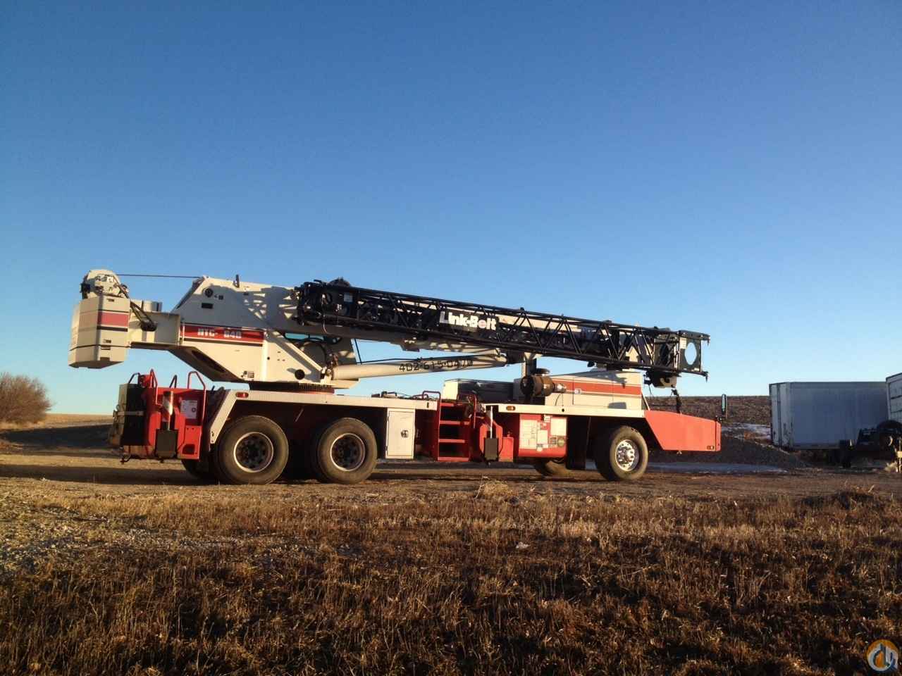 2003 Link-Belt HTC-8640 Telescopic Boom Truck Crane, 33'-105' 4-Section Full-Power Main Boom, 28'-51' Bi-Fold Jib, Cummins ISL 330 Diesel Engine, 5th Outrigger, block and ball.