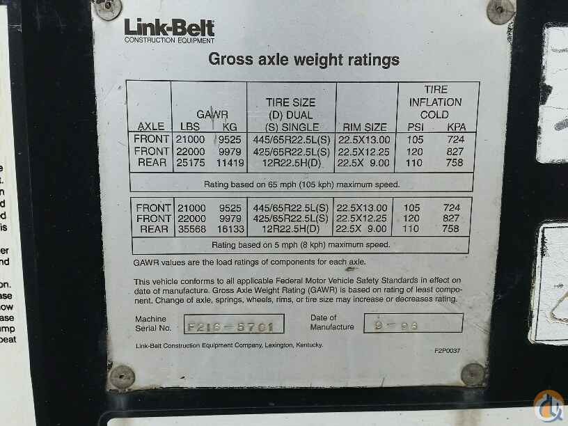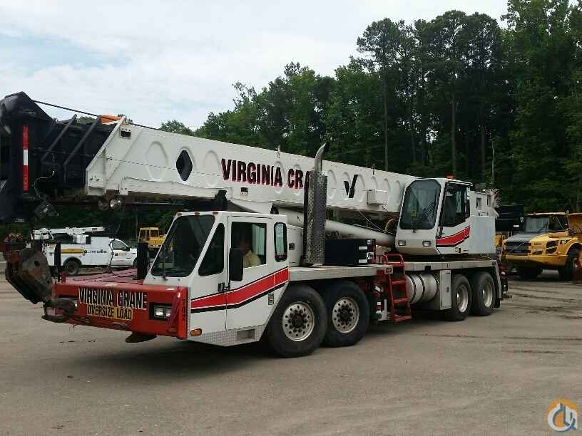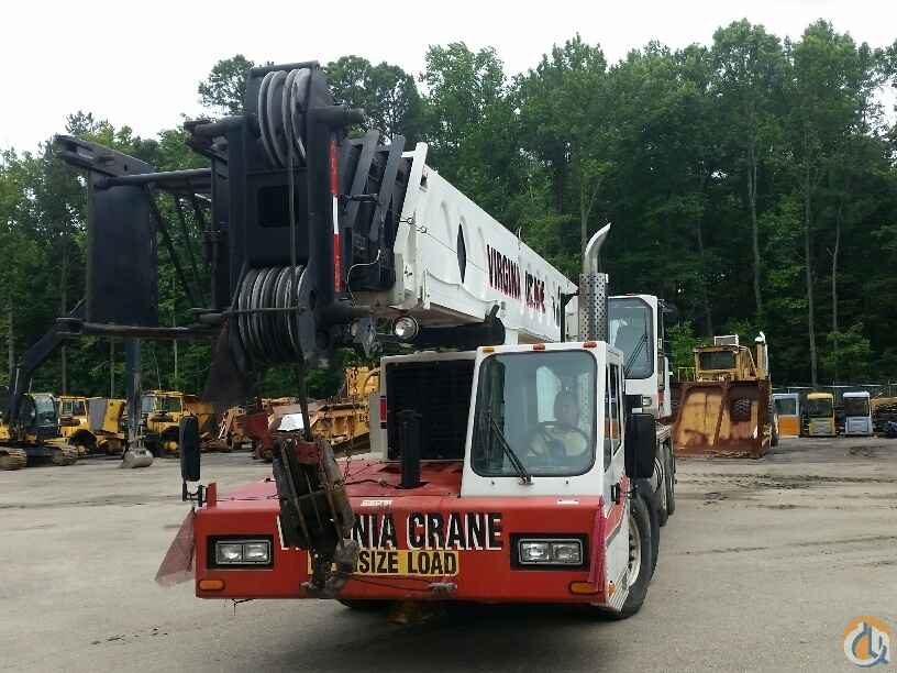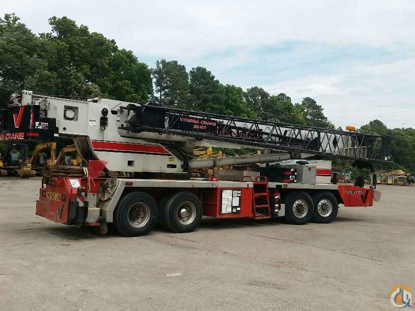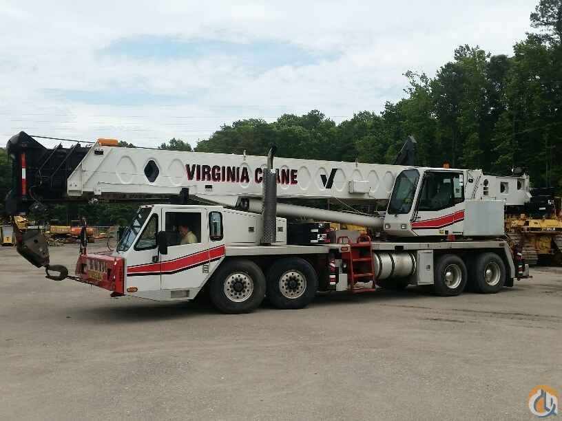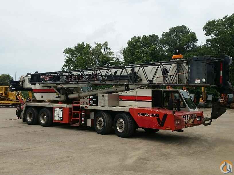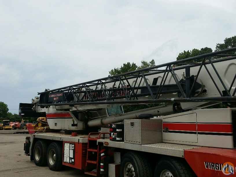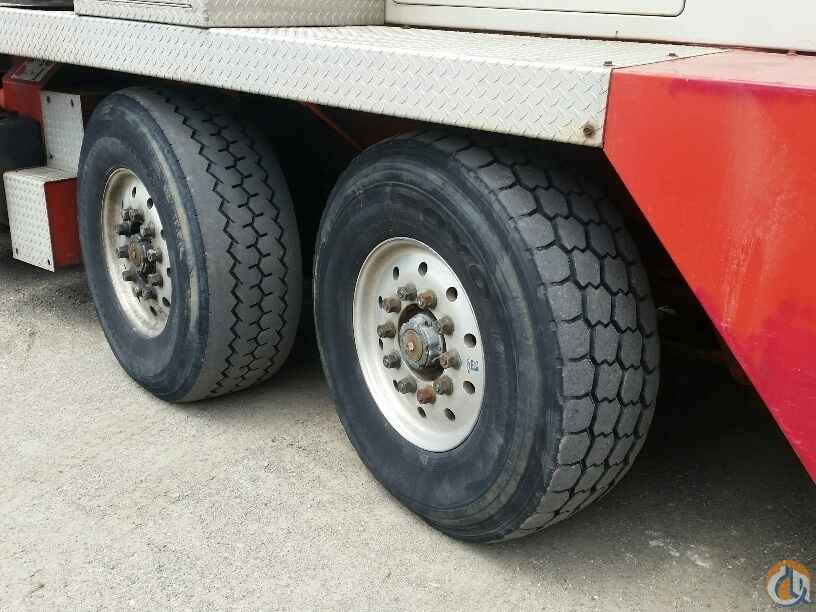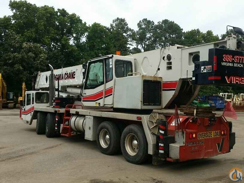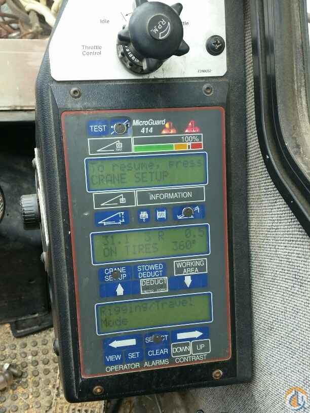 70 ton Crane, Detroit Series 60 lower, Eaton Fuller 9LL, rooster sheave, Johnson 40 ton 4 sheave block, 8.5 ton ball load capacity, 115 ft 4 sec boom, 36 ft - 61 ft swing away offset bifold jib, anti two-block, Microguard 414 LMI, aux winch, cwt removal device, 5th outrigger, Alcoa alluminum wheels