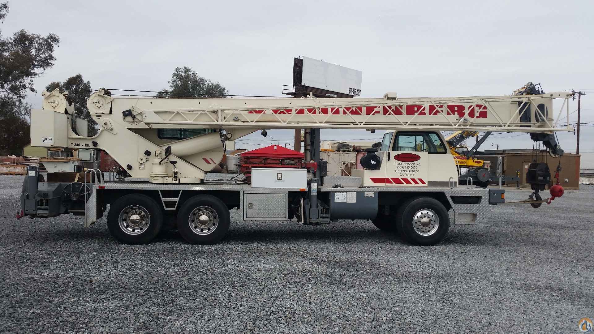 One Owner Crane by Owner Operator, Crane was ordered from Factory with every option avialable at that time; 105' Main, 49' Jib with Heavy Lift Package. Air Condition and Heater in both Upper and Lower. Two Winches, 40 Ton Quick Reeve Load Block, Joy Stick Controls, Light Package, Remote Control from Upper Cab / Driveable, Extra Fuel Tank and Spreader Bar Rack. Cummins Engine, 7,200 hours, 77,000 miles, Tires about 75%, Alison Automatic Transmission.