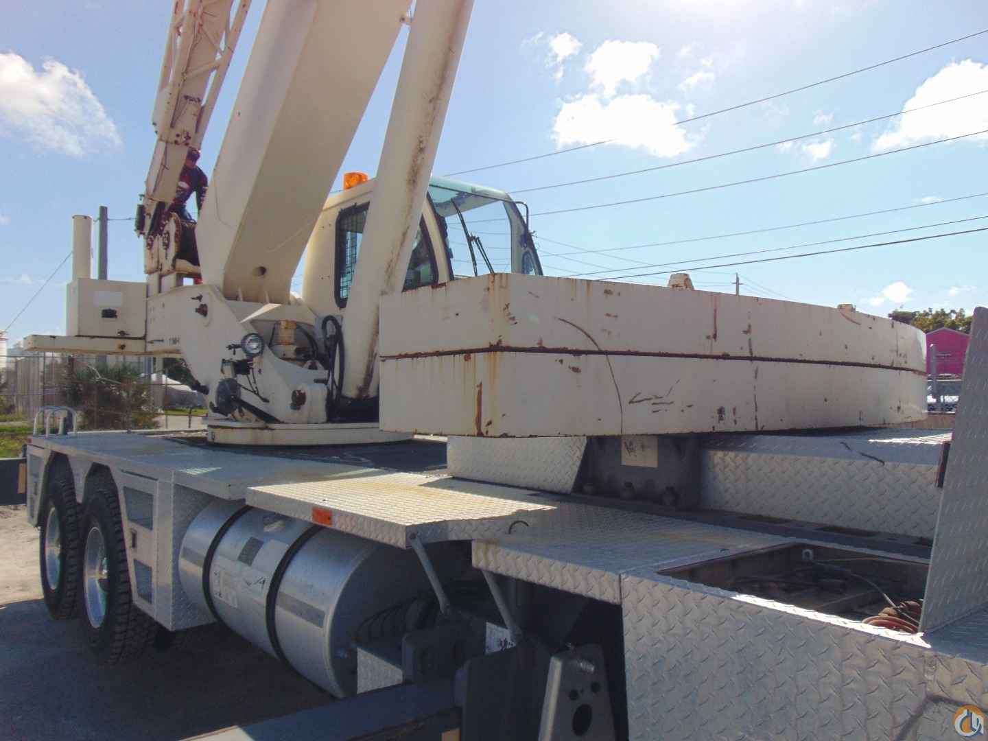 THIS IS THE "T560-1" MODEL WITH A STRONGER CHART, MORE COUNTERWEIGHT, JOYSTICK CONTROLS, AND OTHER IMPROVEMENTS OVER THE OLDER T560 MODEL. 110 FEET BOOM, 33-57 FEET SWINGAWAY JIB, DETROIT 60 SERIES DIESEL ENGINE, EATON 9 SPEED LO & LO- LO (2) TWO WINCHES, AUXILIARY SHEAVE, AIR CONDITIONING IN CRANE CABIN, AIR RIDE SUSPENSION IN FRONT AND REAR, 16,500 LBS COUNTERWEIGHT WITH SELF-REMOVABLE HYDRAULIC SYSTEM. CURRENT HOUR METER READING: 7648 TOTAL ENGINE HOURS, THESE ARE THE TOTAL COMBINED HOURS FOR CRANE TIME (APPROX 4,000 HOURS) PLUS DRIVING TIME (APPROX 3,600 HOURS)