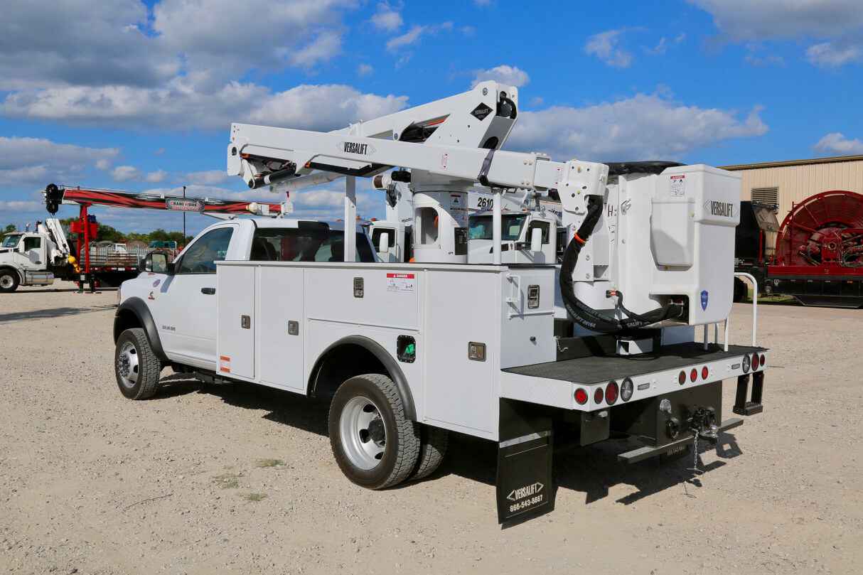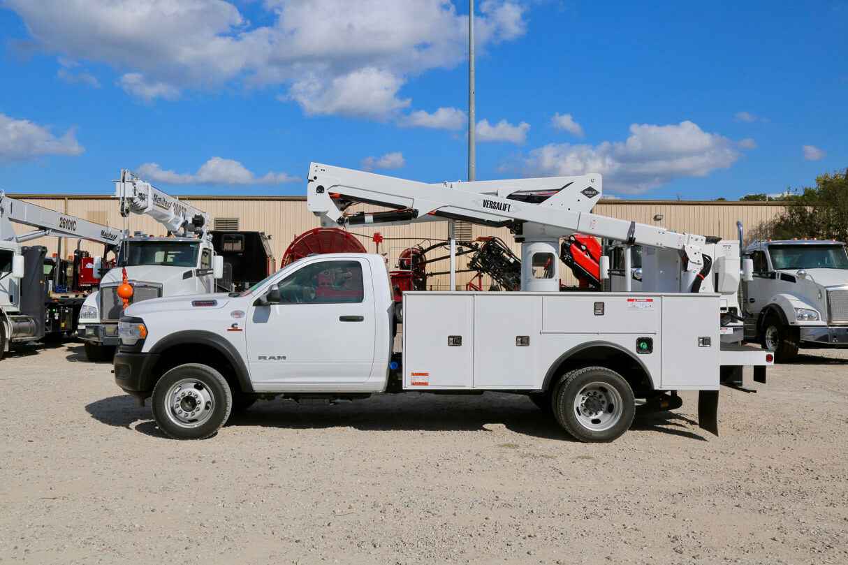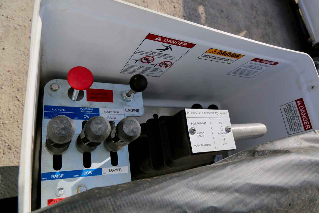 Product Overview Working Height: 45 ft (13.72 m) Height to Bottom of Platform: 40 ft (12.19 m) Horizontal Reach: 27.75 ft (8.23 m) Stowed Travel Height: 10.33 ft (3.05 m) Platform Capacity: 450 lbs (204.12 kg) Insulated or Non-insulated: Insulated Material Handling: No