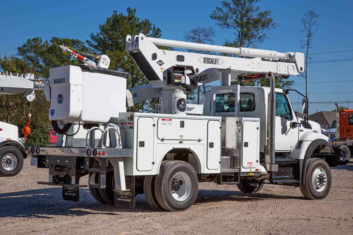 PRODUCT OVERVIEW Working Height: 65.08 ft (19.81 m) Height to Bottom of Platform: 60.08 ft (18.29 m) Horizontal Reach: 38.75 ft (11.58 m) Stowed Travel Height: 11.92 ft (3.35 m) Platform Capacity: 650 lbs (294.83 kg) Insulated or Non-insulated: Insulated Material Handling: Yes SPECIFICATIONS HYDRAULIC SYSTEM Hydraulic Controls: Full Hydraulic Operating Pressure: 2250 psi (158.19 kg/cm²) Flow Rate: 7.5 gpm (26.5 lpm) Filtration: 10 micron return | 100 mesh suction System Type: Open Center Power Source: PTO Pump BOOM Lower Boom Articulation: 0° to +86° Inner/Outer Boom Articulation: -25° to +85° Inner Boom Extension: 141 in (3.58 m) Insulation Gap Fully Retracted: 38 in (0.97 m) Insulation Gap Fully Extended: 179 in (4.55 m) Lower Boom Insulation Gap: 24 in (0.61 m) Lower Boom Lift Eye Capacity: 1000 lbs (453.59 m) Boom Rotation: Continuous