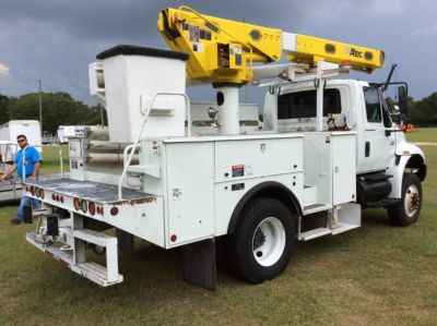 Altec L42A, 47 ft, Over-Center Bucket Truck s/n 0807-CU1552, with single-man bucket, center mounted on 2008 International 4200 4x4 Utility Truck, VT365 diesel, Auto, A/C - More Information on this Equipment