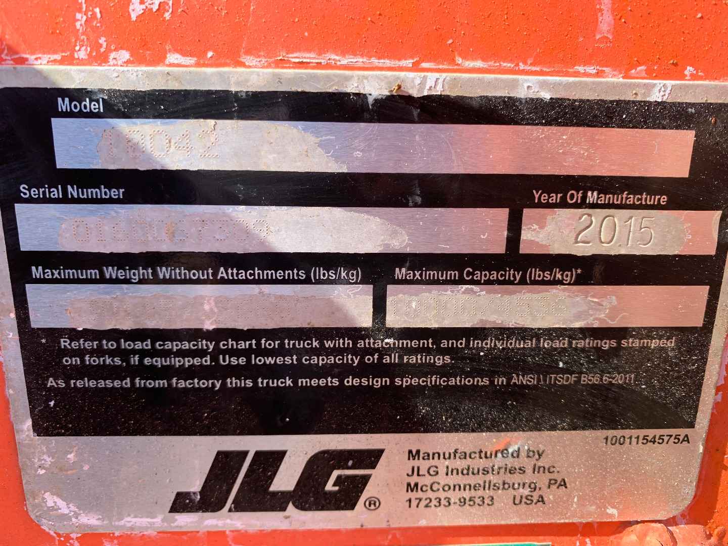 10,000 Lbs Max Cap, Cummins QSB3.3 Engine, 42' tip height, great condition.
