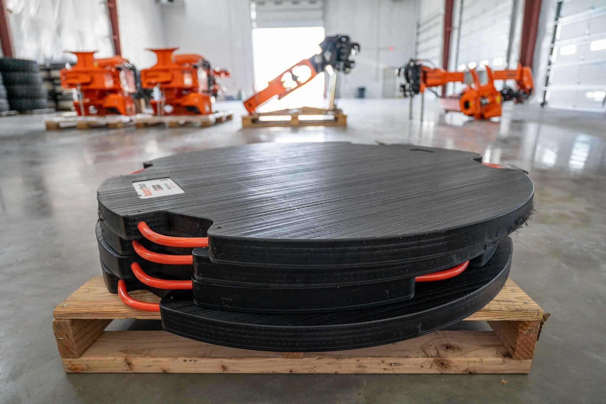 Engineered for strength, rigidity and maximum load distribution in an easy to use, unbreakable outrigger pad. Built using DICA’s proprietary engineered thermoplastic material, every SafetyTech® Outrigger Pad is designed and sized to never physically or functionally fail. DICA outrigger pads, stabilizer pads and crane pads are put to the test daily in demanding industries including electric utility, crane rental, construction, tree care, concrete pumping, mining and drilling operations and all five branches of the U.S. armed forces and NASA. Made in the USA. Up to 500 psi crush ratings and 210,000 lbs. rated capacities. Proprietary material, TuffGrip Handles, radius edges and corners, industrial grade safety texturing, non-conductive, engraved weight and model. Guaranteed unbreakable and trusted by operators in 50+ countries and 7 continents around the world. ------------------------ MEDIUM DUTY Equipment: On Rubber, Smaller Aerial Lifts, Digger Derricks, Spider Lift Cranes, Knuckle Boom Cranes, Scaffolding, Small Carry Deck Cranes, Trailers, MEWPS. Typical Use: Smaller, lighter weight equipment with lower reaction forces and a basic need for stability and load distribution. ------------------------ HEAVY DUTY Equipment: Off Rubber, Concrete Pump Trucks, Aerial Lifts, Digger Derricks, Boom Trucks, Self Erecting Tower Cranes, Mobile Substations, Rock Crushers, Scaffolding, Service Trucks, Two Trucks, Forestry Trucks, Well Drilling Trucks, Spider Lift Cranes, Knuckle Boom Cranes, MEWPS, Carrier Mounted Tower Cranes, Telehandlers. Typical Use: Smaller to medium sized equipment with reaction forces up to 100,000 lbs. Stability and load distribution needs are higher. ------------------------ SUPER DUTY Equipment: Off Rubber, Concrete Pump Trucks, Aerial Lifts, Digger Derricks, Boom Trucks, Self Erecting Tower Cranes, Mobile substations, Rock Crushers, Scaffolding, Service Trucks, Tow Trucks, Forestry Trucks, Well Drilling Trucks, Knuckle Boom Cranes, Carrier Mounted Tower Cranes. Typical Use: Medium sized equipment with reaction forces up to 100,000 lbs. Stability and load distribution needs are high. ------------------------ SPECIAL DUTY Equipment: Smaller Aerial Lifts and Digger Derricks, Spider Lift Cranes, Mini Cranes, Pole Pullers, Concrete Pumps. Typical Use: Each special duty pad is designed for specific equipment needs and application.