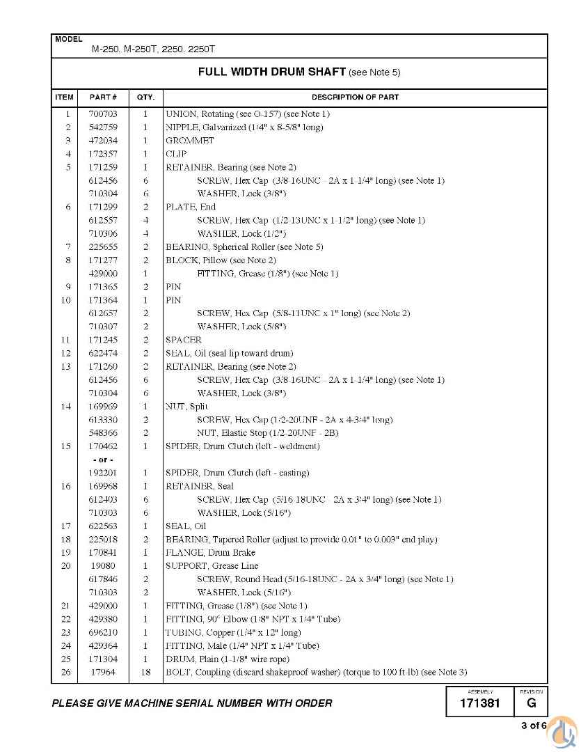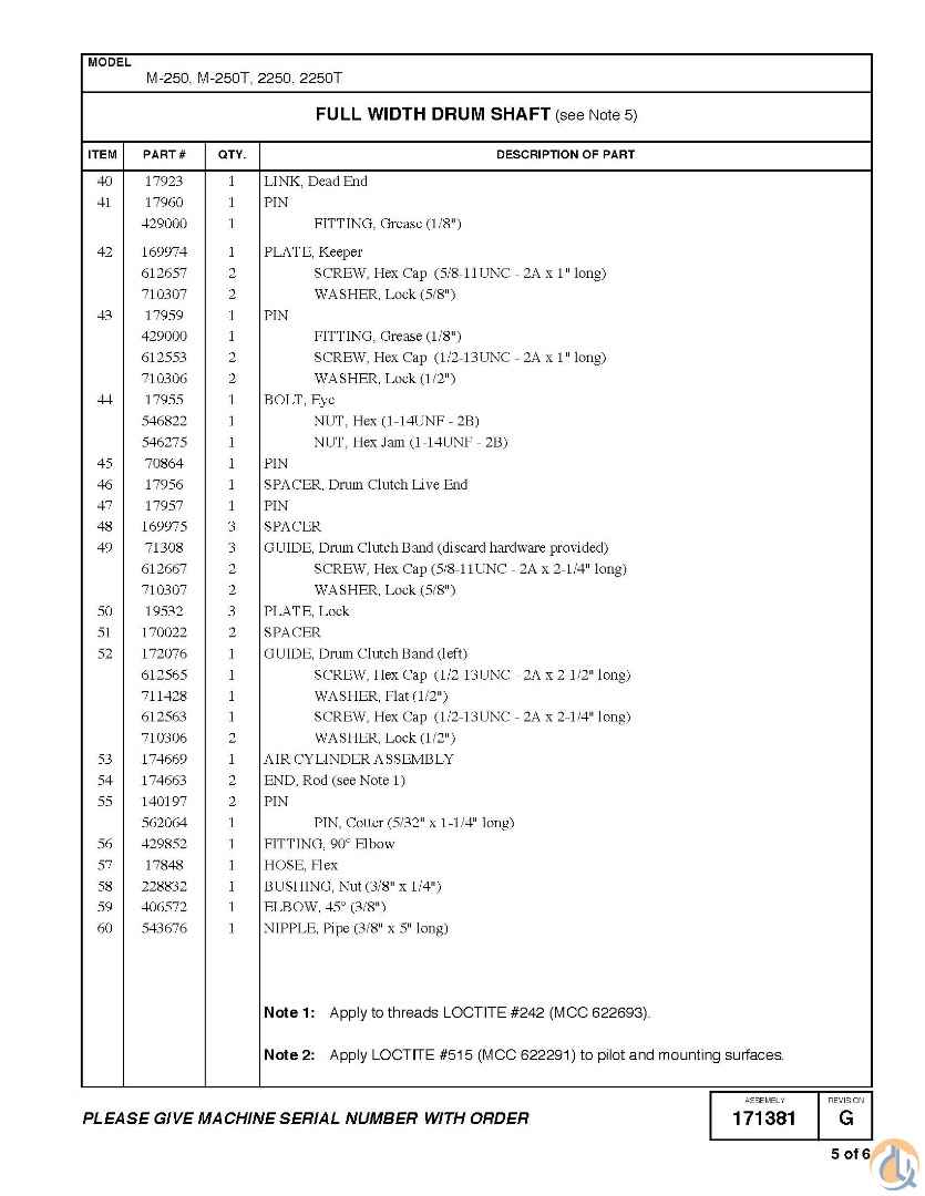 171381 MANITOWOC M2250 DRUM ASSY.