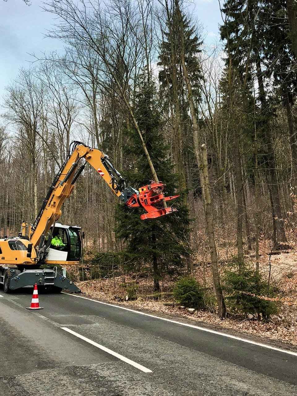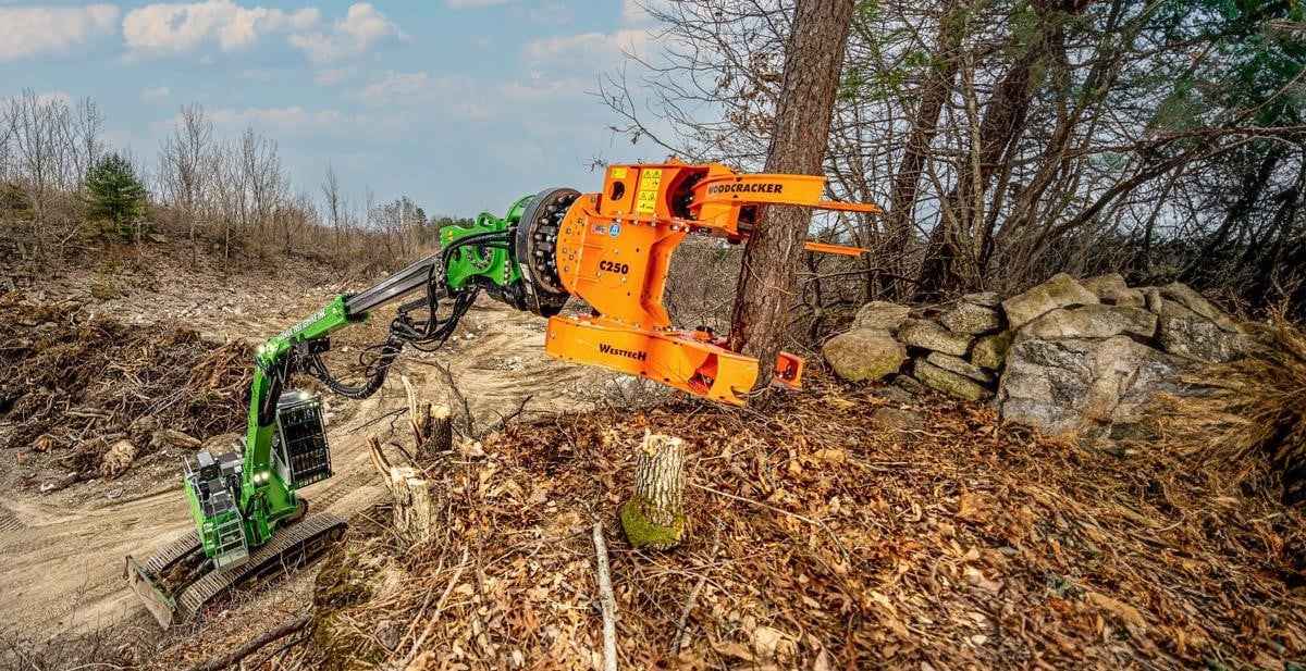 Woodcracker C: The efficient tree shear for safe harvesting of trees and brush. Application Areas: -Conventional harvest of trees and bushes. -Harvest of short rotation plantations. -In rough terrain, hill areas and bog areas. -Maintenance along traffic roads and routes. -Large-scale harvest of forest areas. -Problematic and dangerous tree felling. -Cultivation and landscape maintenance. Bunched and organized deposition due to accumulating function. -In places, that require to remove the tree in an upright position (to protect the surrounding area). Key Facts: -Suitable for every standard excavator, only 4 hydraulic connections needed (including all options). -Proper and simple connection. -Replaceable, high-strength blade, easy to sharpen, patented. -Additional workload of the carrier vehicle due to the treeshear Woodcracker®C. -Supporting foot for safe storage and transport. -Robust and proven technology – Low-wear and low-service. -KTL-primed (cathodic dip-coating) and powder coating. -Made of high-strength Hardox®steel