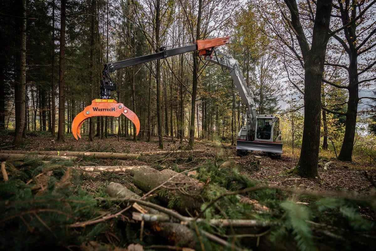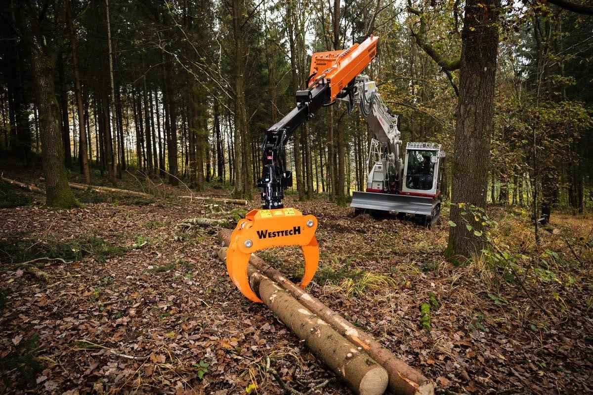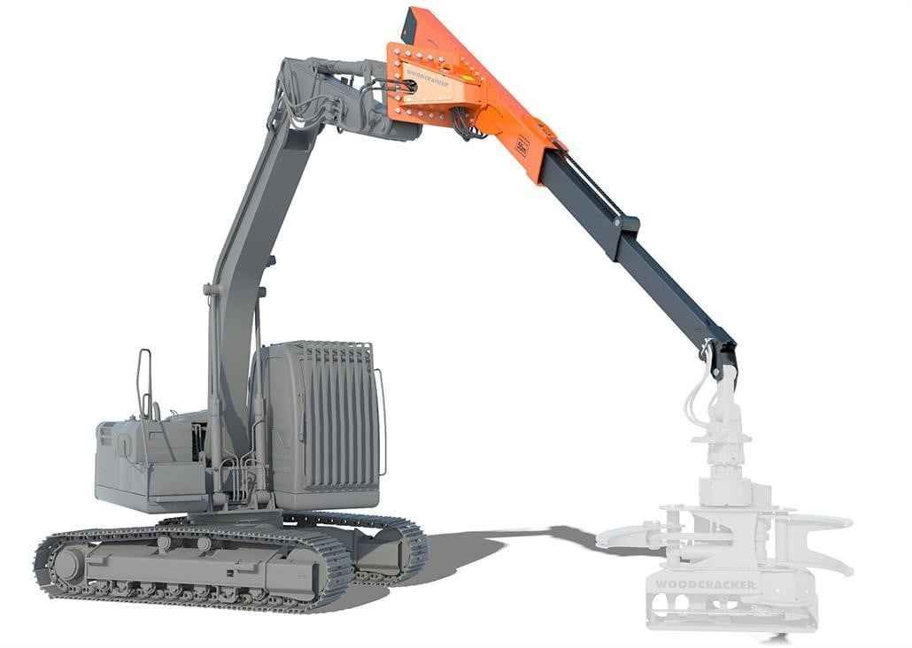 Woodcracker T: The telescope stage for excavators to increase the reach without any conversion work. Application Areas: -Can be attached to any standard excavator to increase the reach without any conversion work on the carrier vehicle. Key Facts: -Perfect suited for Woodcracker ® CS crane and Woodgripper. -Various individual attachments possible (eg. wood tongs, grapple saws, clamshell bucket, …). -Can be attached to standard excavator quick-coupling systems. -4, optional 6 hydraulic connections at the top. -No special excavator specification needed – for every excavator from 14 – 22 tons.