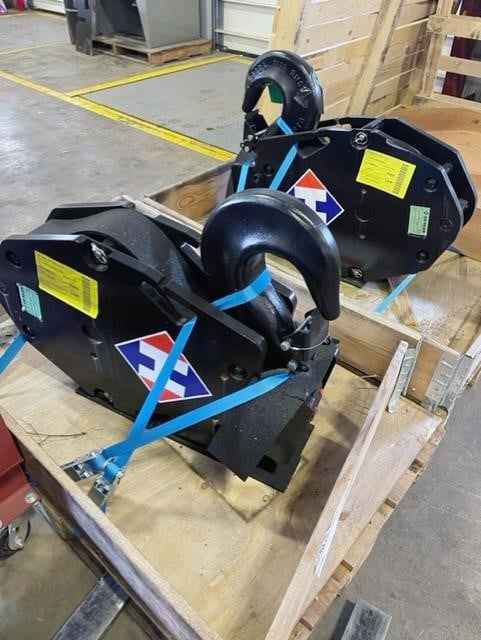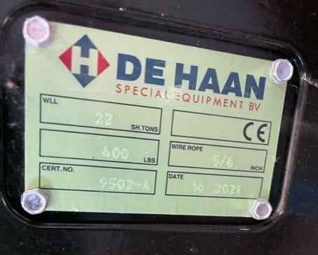 Two 22 Ton Dehaan Hook Blocks for Sale Quick Reeve Brand: Dehaan 22 US Ton 1 sheave 5/8” wire rope 400 lbs Located in Syracuse, NY Call Empire Crane for a quote & more details