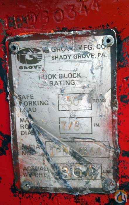 7/8" -50 ton hook block,(4) 18" metal sheaves, locking safety latch. 864 lbs.