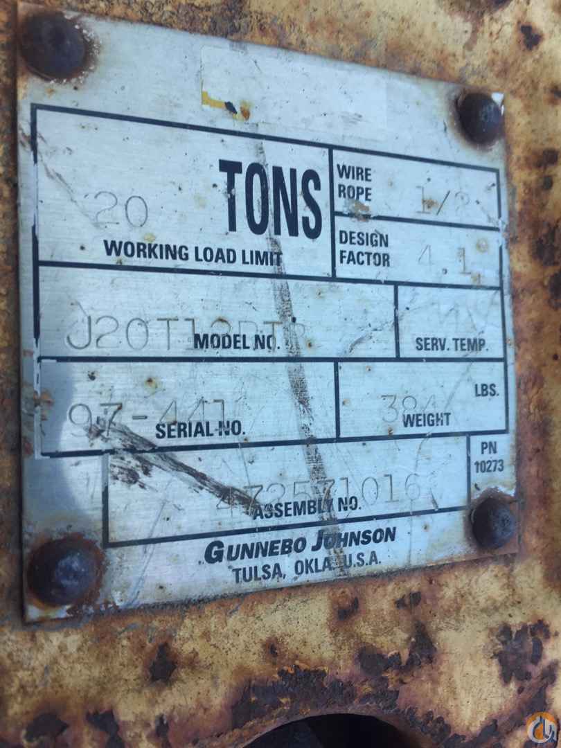 Johnson 20 Ton Three Sheave Hook Block accommodates 1/2” wire rope; CranesList ID: 506,