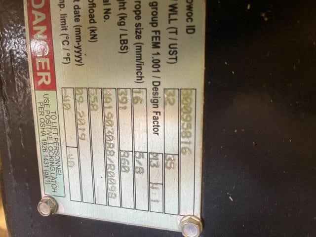 Tonnage: 35 Ton Sheaves: 4 (16”) Sheaves 5/8” wire rope Weight 860 lbs.