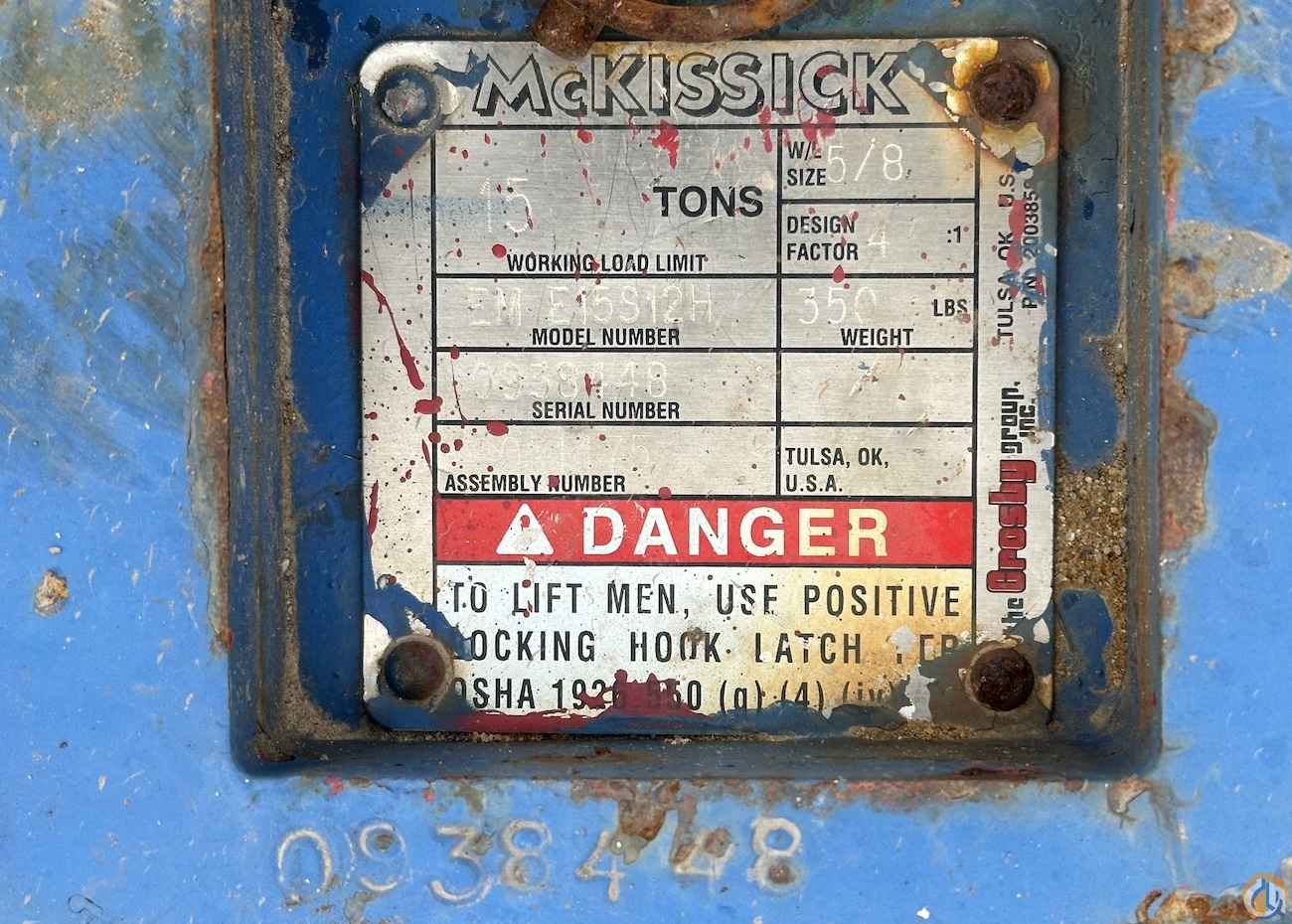 SINGLE SHEAVE, QUICK REEVING, 15 TON, MCKISSICK HOOK BLOCK