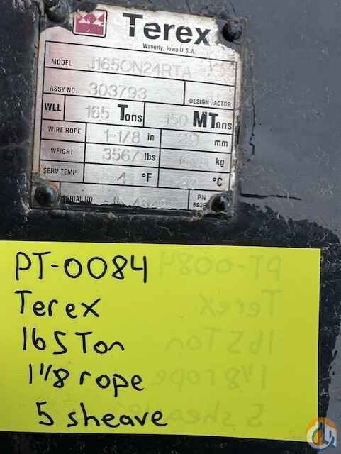 Terex, 165 TON SINGLE HOOK 5 SHV, 1-1/8" (28MM) ROPE (1185858) Weight 3567lbs Location Branchburg, NJ Price $37,500.00