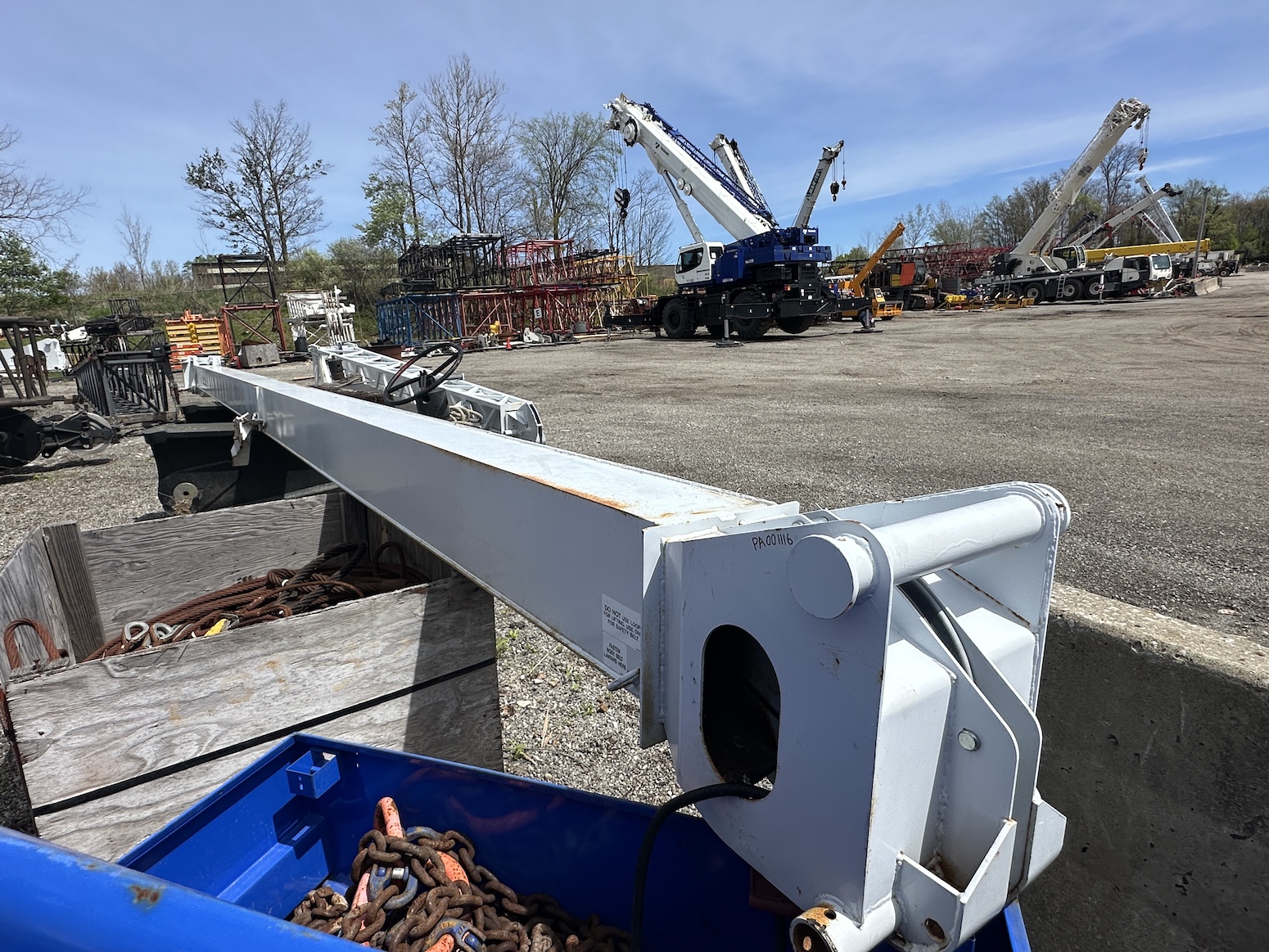 Exact Crane stocks new and used hook blocks, headache balls, jibs, boom sections, crane pads, ground protection mats, all-in-one power systems, man baskets, pallet forks, self-dumping bins, concrete buckets, material baskets, camera systems, winches, tool boxes, lubricants, greases, & more. Visit our website or contact the Exact Crane team for more information or specific inquiries.
